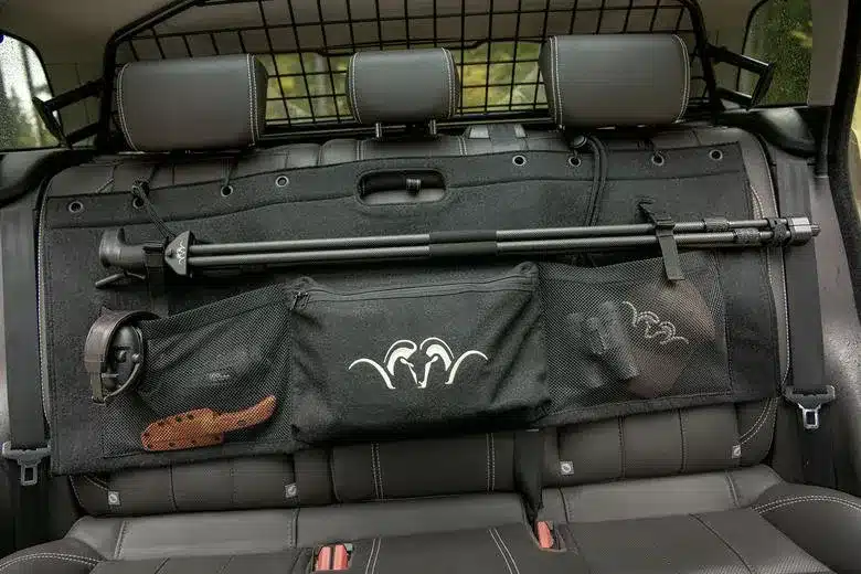 Pouzdro Blaser do auta jednoduše připevníte na opěrky hlavy předních sedadel a pohodlně do něj umístíte svoji loveckou výbavu